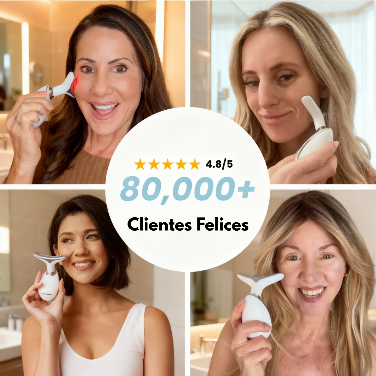 ¡Nuestro escultor facial es un masajeador facial premium equipado con 3 luces LED diferentes que han sido científicamente cobradas para adelgazar cara/cuello, ayudar a la simetría facial, reducir las arrugar, combatir el acné y más!